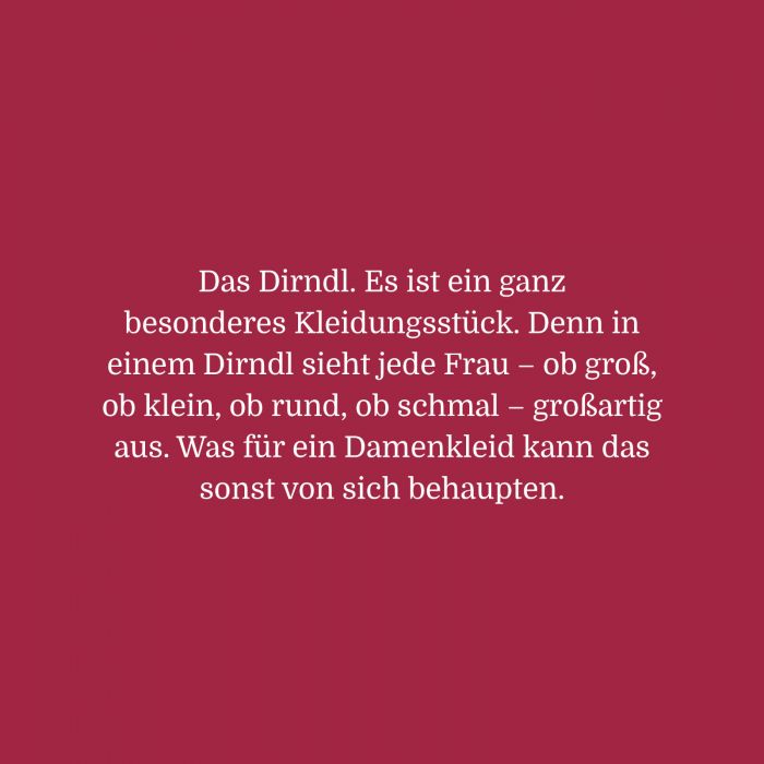 Für sie war das „Dirndlgewand“ eine Dienstbotentracht für ihre Arbeit am Hof und am Feld. Gegen Ende des gleichen Jahrhunderts entdeckte die Oberschicht das Dirndl für sich. Alsdann gehörten städtische Damen in prächtig genähten Dirndln auf den Sommerfrischen und anderswo zum Chic. Seit jenen Tagen ist das Dirndl zu einem Kulturgut mit einem schier unbegrenzten Facettenreichtum gewachsen. Eingebettet in so unterschiedlichen Traditionen, so divers die Traditionen in den alpenländischen Regionen sind.