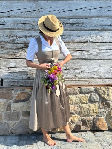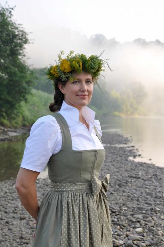 Die Salzach, die direkt an unserem Haus vorbeifließt, inspirierte das sanfte, mystische Grün der Kollektion. Das zarte Beige spiegelt den Ton des Sandes am Ufer wider. Edles Leinen in Kombination mit feiner Seide steht für zeitlose Eleganz.